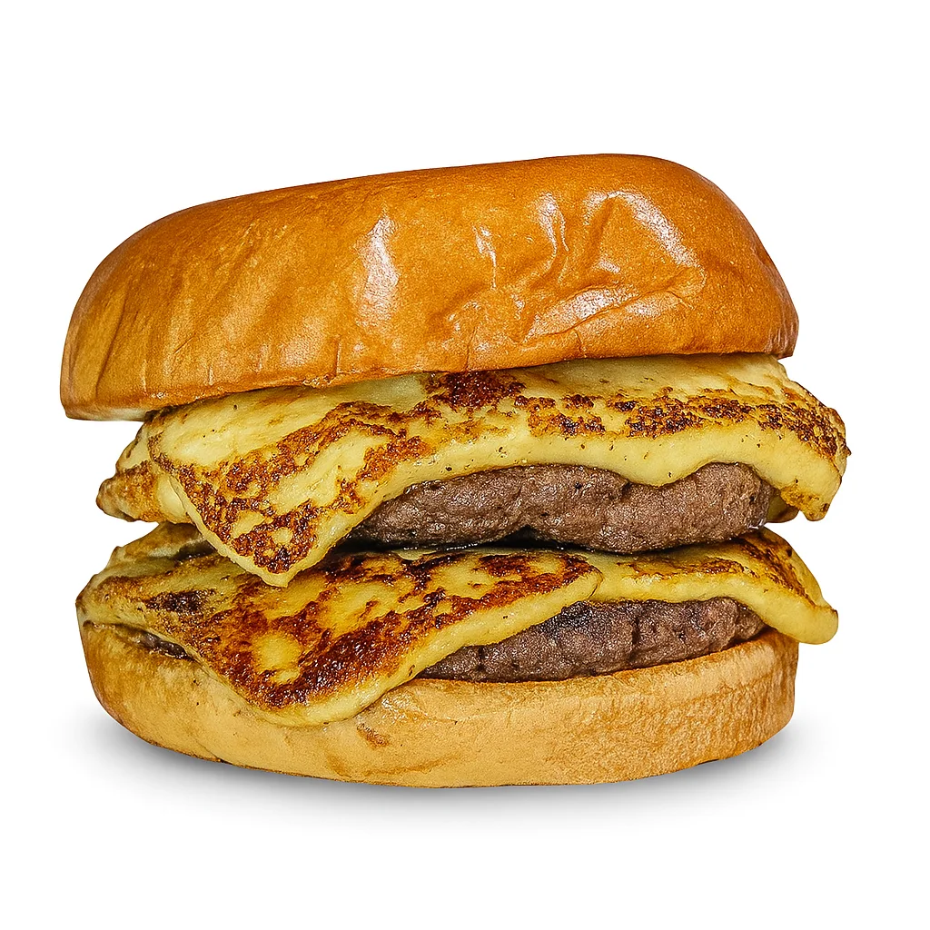 Pão brioche, 2 burgers blend de 120g cada, queijo muçarela e cheddar premium, cebola crispy, bacon, maionese artesanal exclusiva.