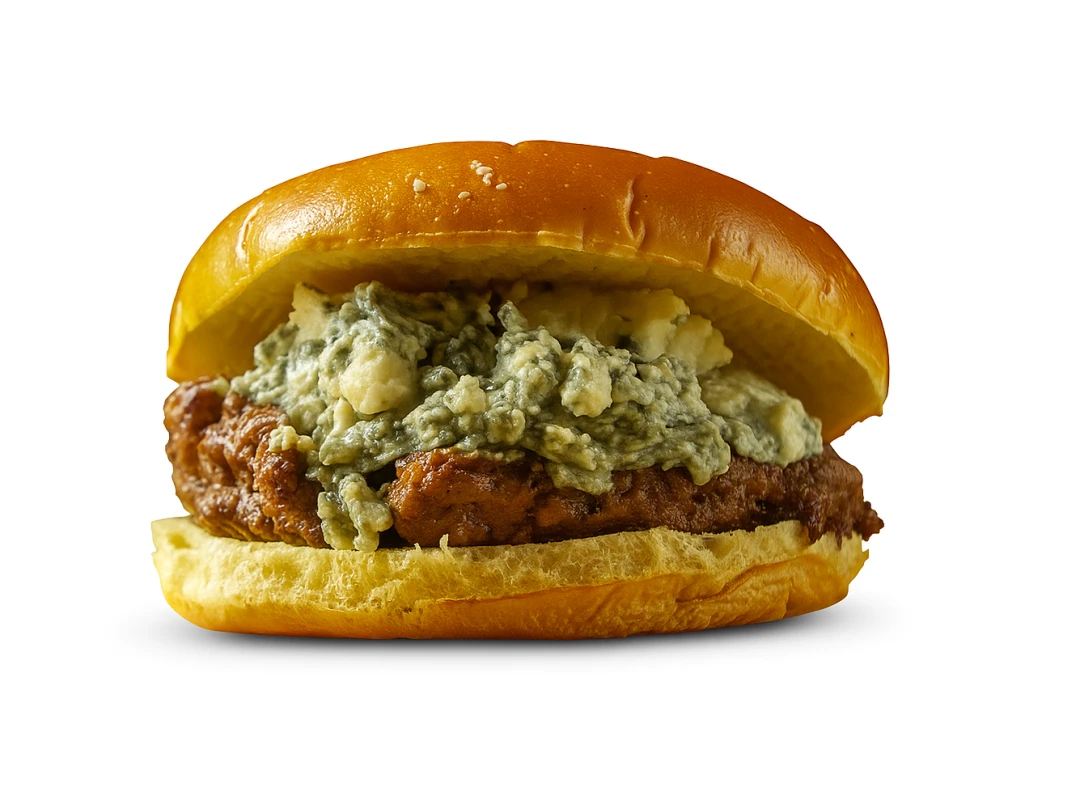 Pão brioche. 1 blend bovino de 120g. queijo gorgonzola com nossos temperos especiais. maionese especial da casa.