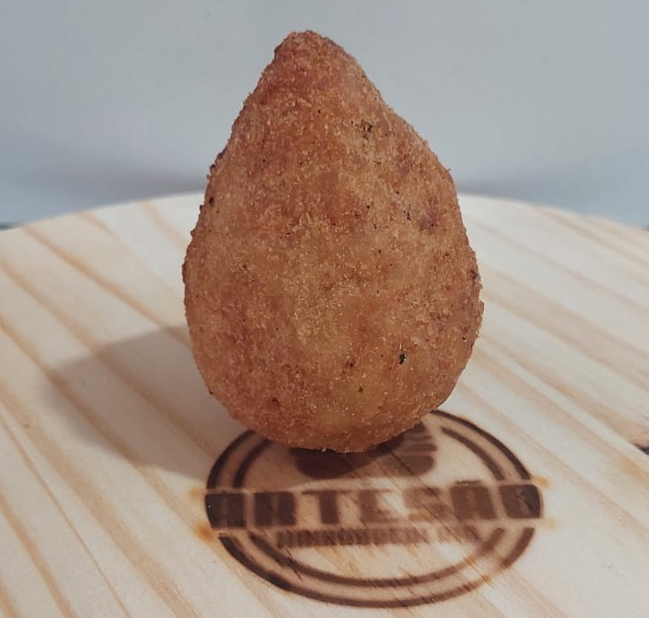 Experimente a irresistível coxinha com massa crocante e recheio suculento de frango desfiado, temperado na medida certa para te deixar com água na boca. Uma explosão de sabores em cada mordida!